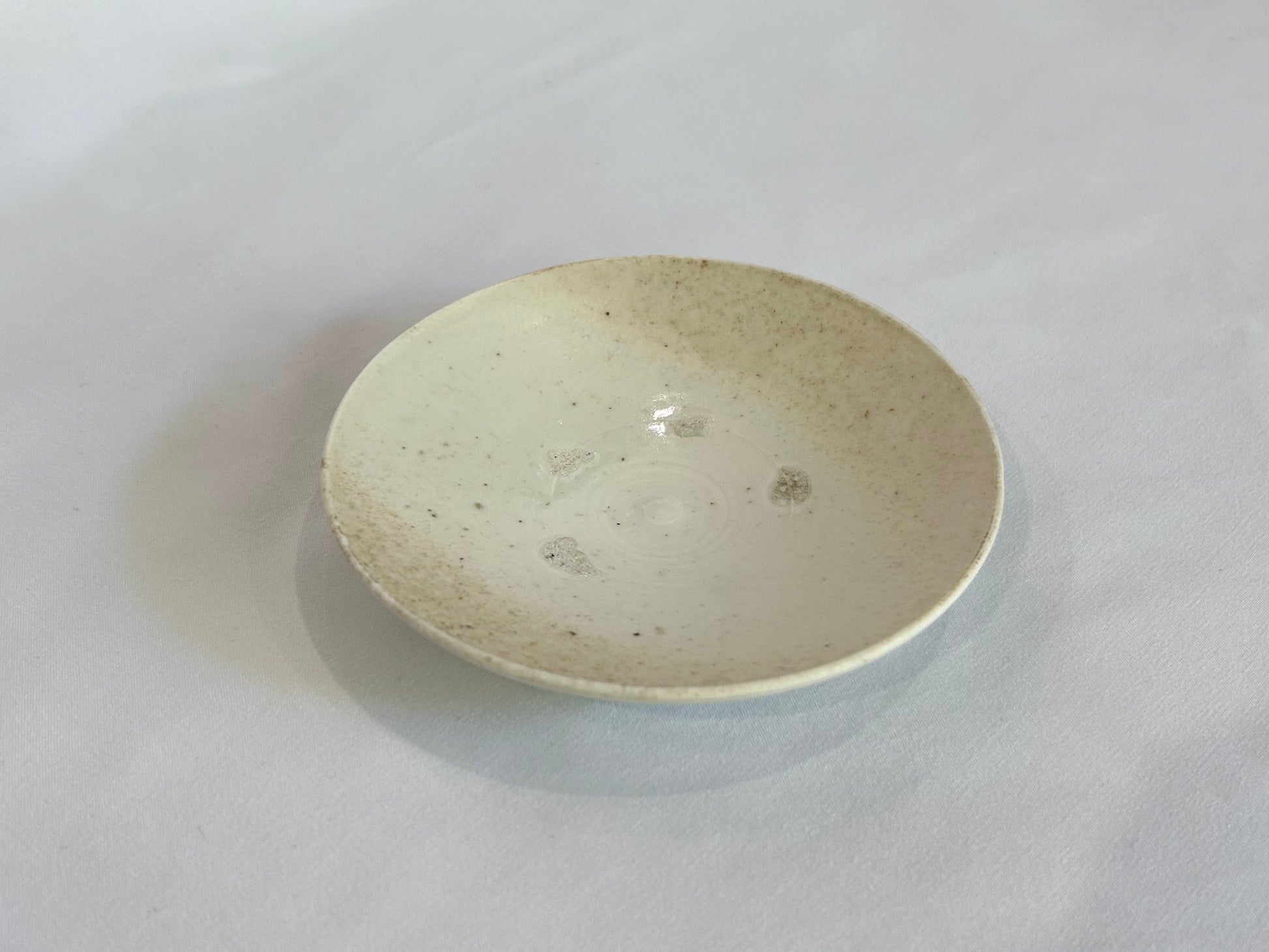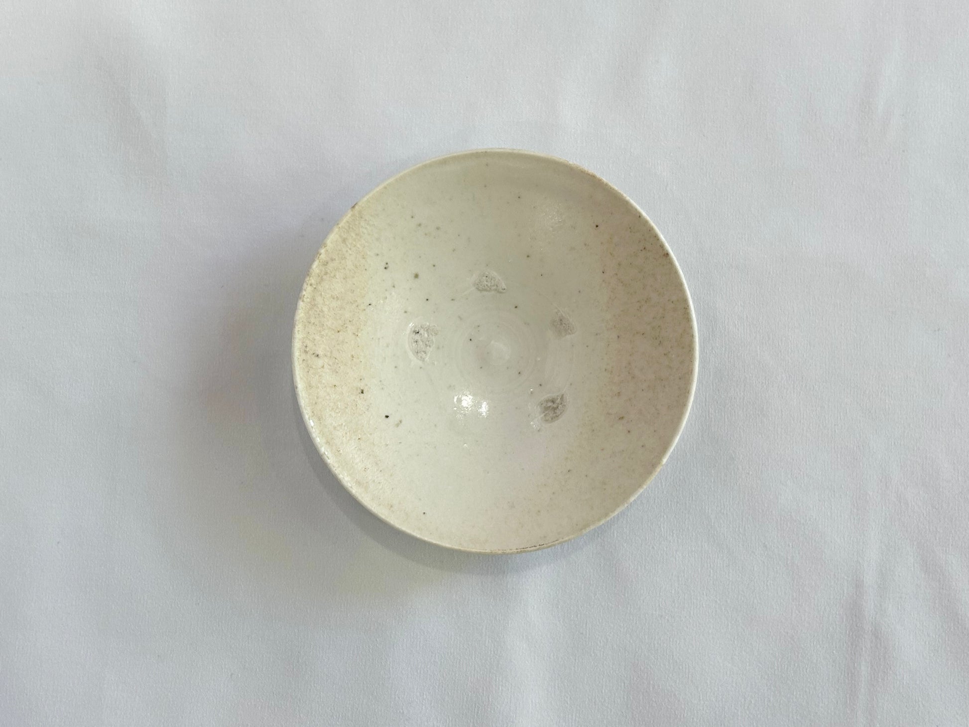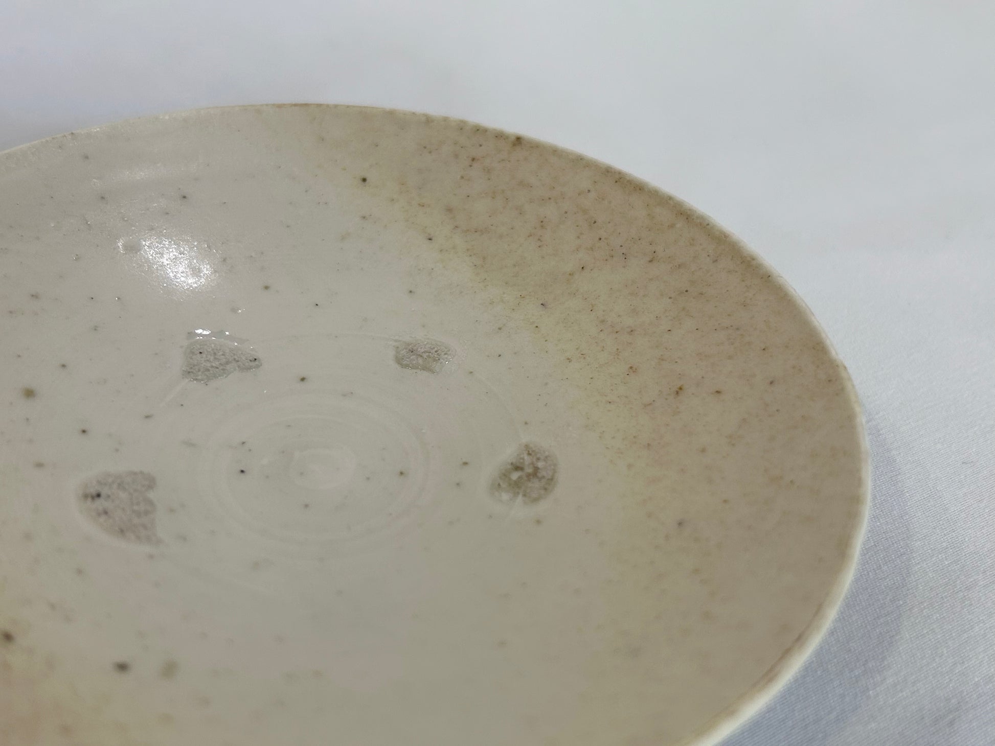 ●こちらの商品には目跡がついています。目跡とは、器を重ねて焼く際に、器の釉薬同士がひっついてしまわないように、小さく丸めた粘土の粒などを器と器の間にかませます。その粒を焼いた後に取った跡のことです。量産型の器にはあまり見られない手仕事の証です。