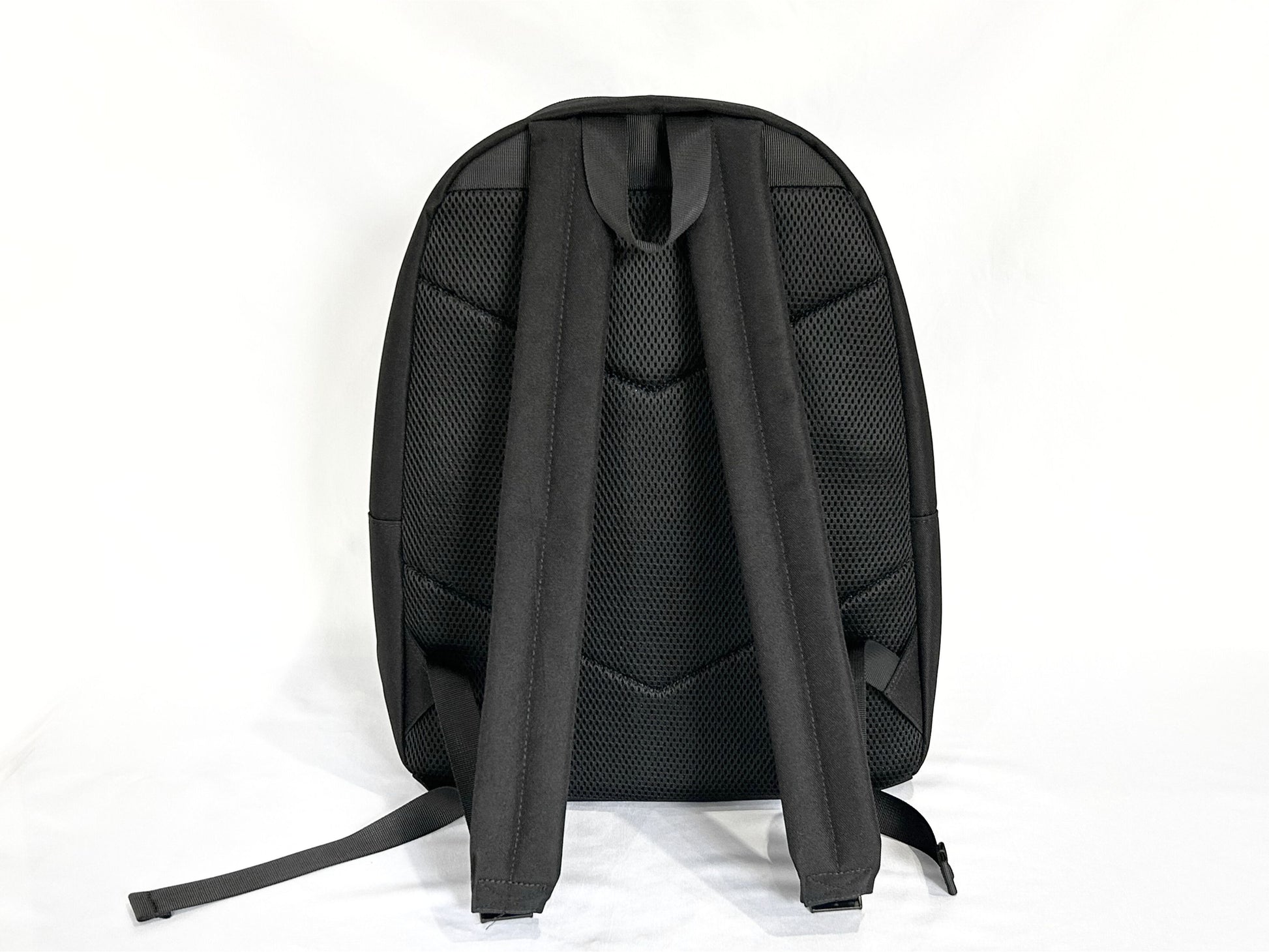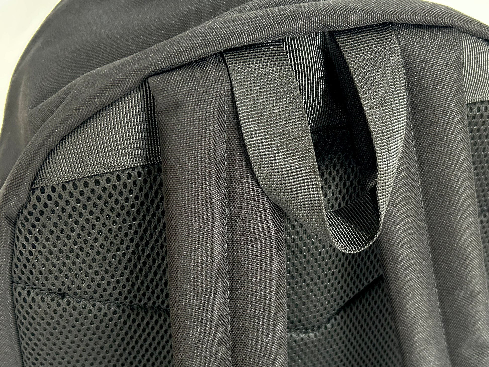 背面には通気性が良いラッセルメッシュを採用し、ニットなどの上から背負っても毛玉になりにくい仕様。