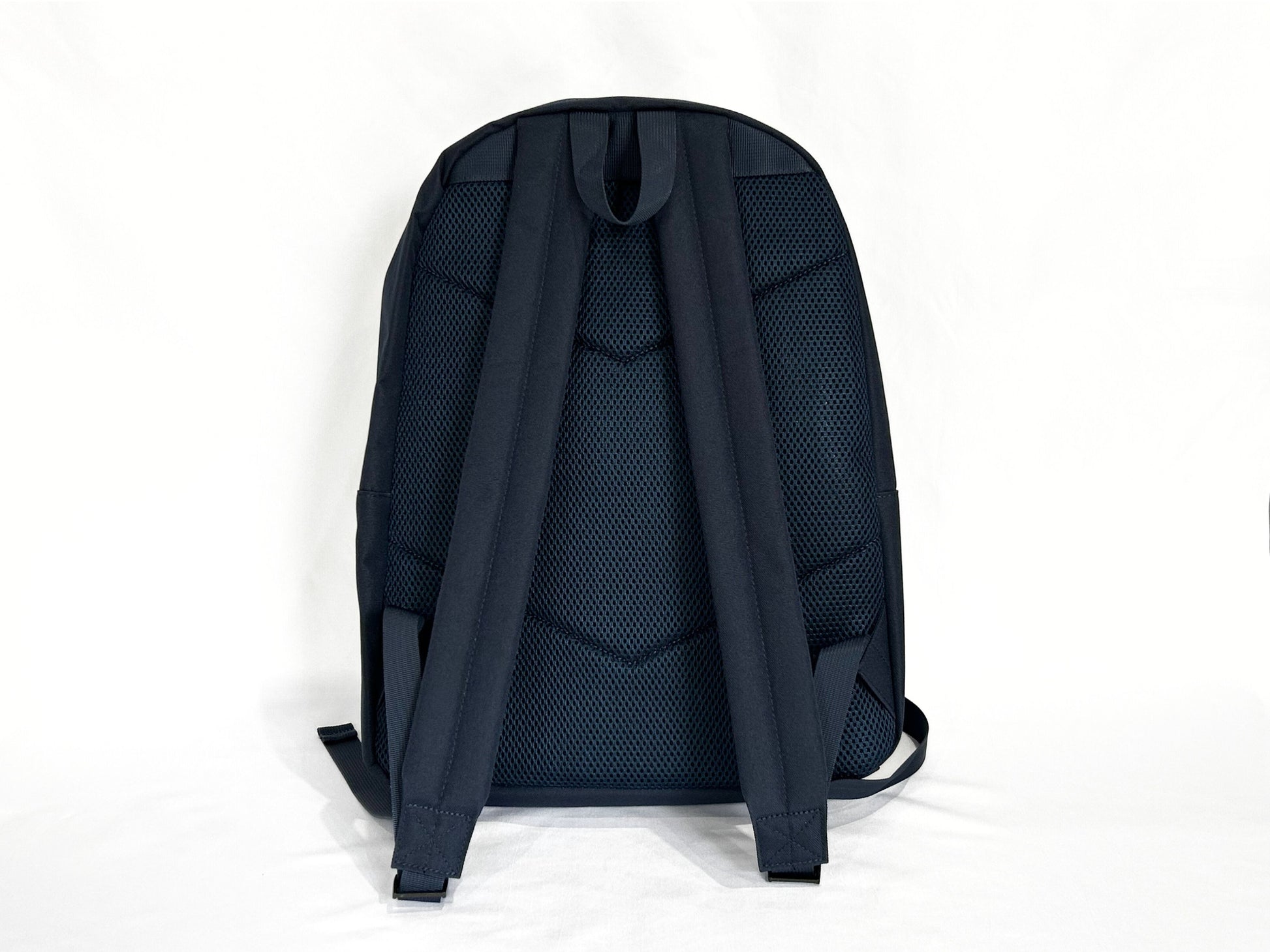 背面には通気性が良いラッセルメッシュを採用し、ニットなどの上から背負っても毛玉になりにくい仕様。